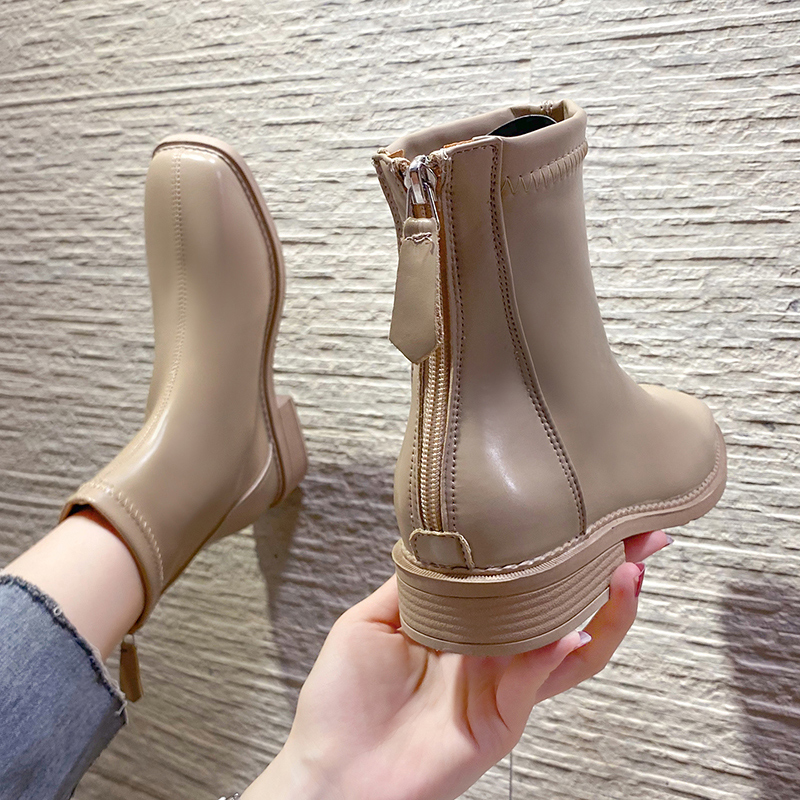 女靴子靴子韩版潮时尚保暖防滑短靴圆头粗跟