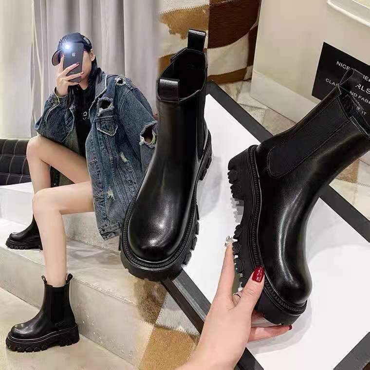 女靴子靴子韩版潮时尚保暖防滑短靴圆头粗跟