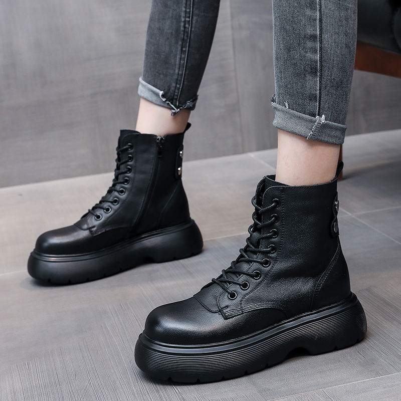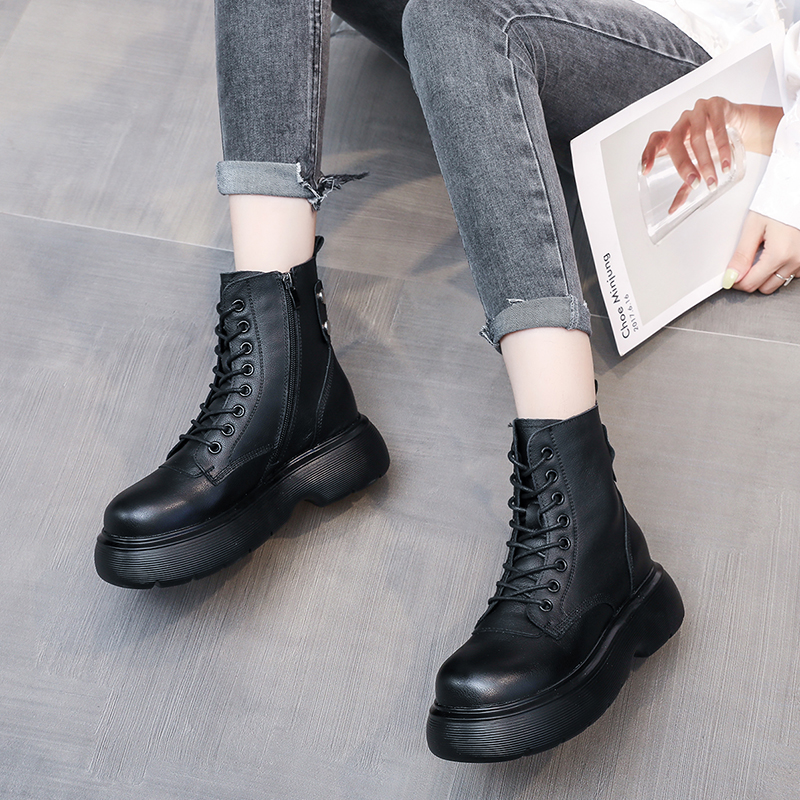 女靴子靴子韩版潮时尚保暖防滑学院短靴圆头粗跟