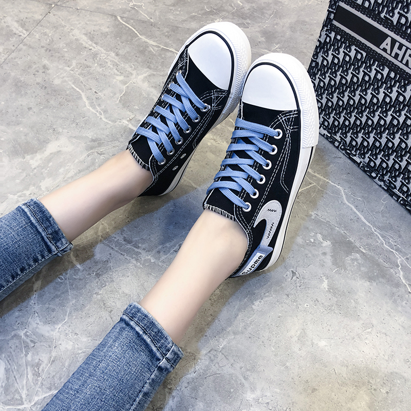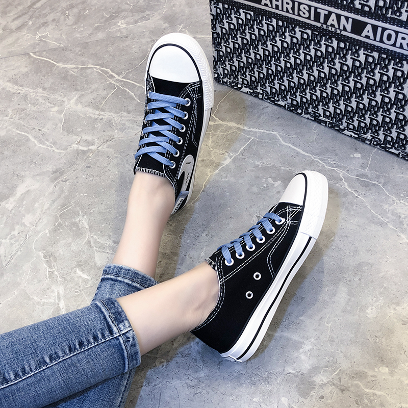 一脚蹬懒人鞋白色帆布鞋女鞋子帆布鞋欧美英伦时尚学生低帮