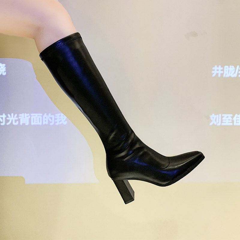 女靴子靴子韩版潮时尚保暖防滑高筒靴圆头粗跟