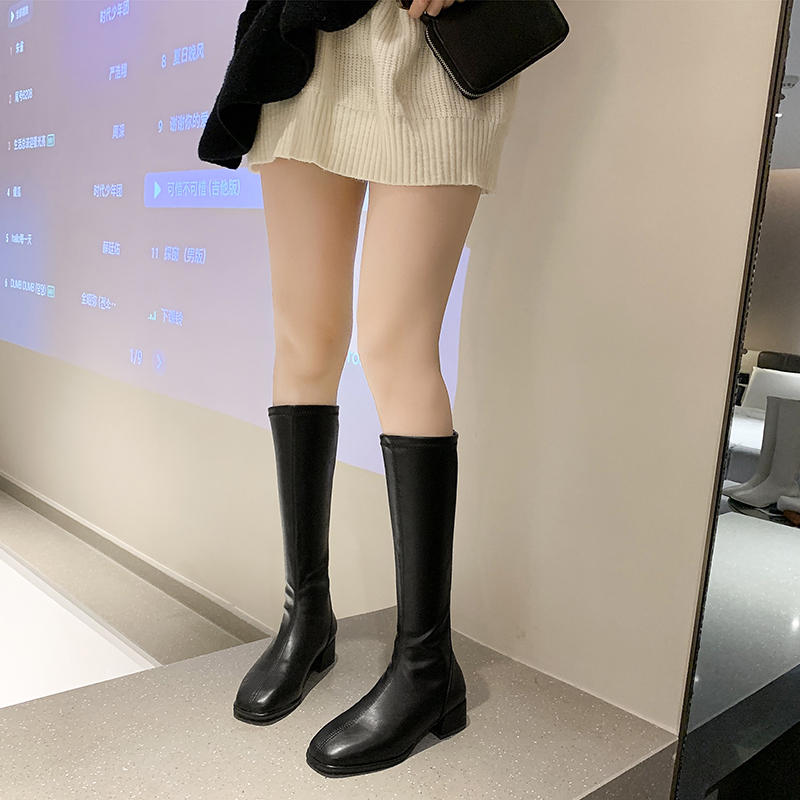 女靴子靴子韩版潮时尚保暖防滑高筒靴圆头粗跟