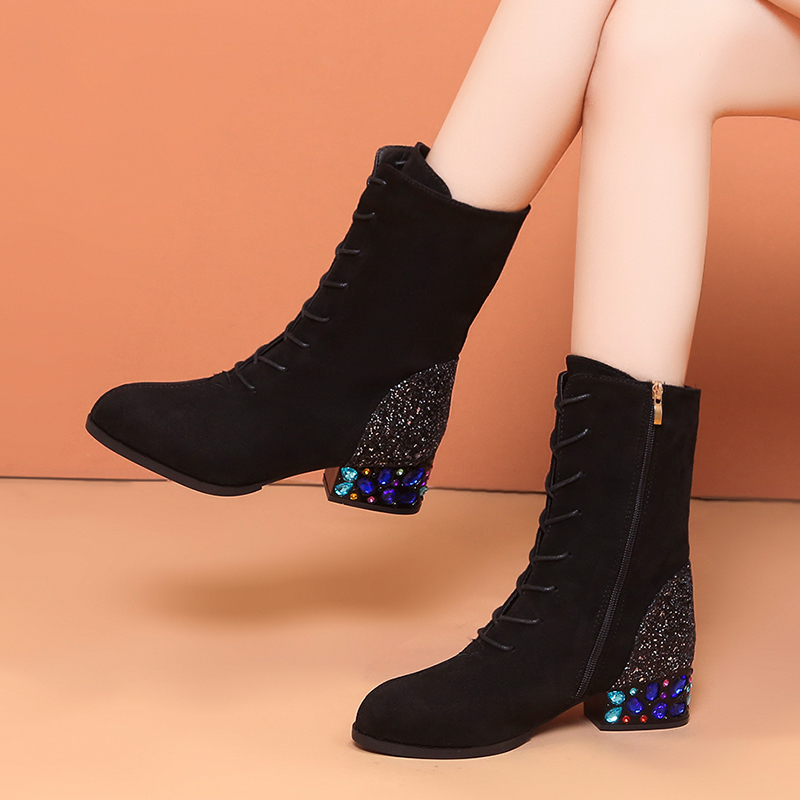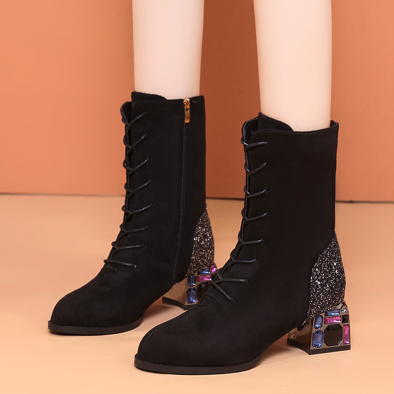 女靴子靴子韩版潮时尚保暖防滑绒面短靴圆头粗跟