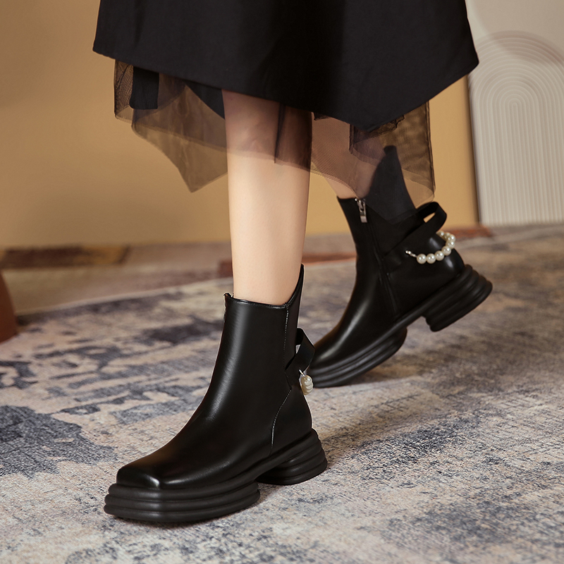 女靴子靴子韩版潮时尚保暖防滑短靴圆头粗跟