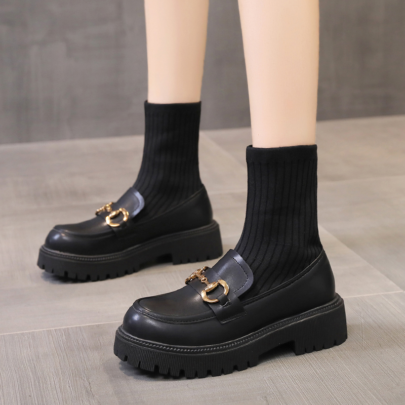 女靴子靴子韩版潮时尚保暖防滑短靴圆头粗跟