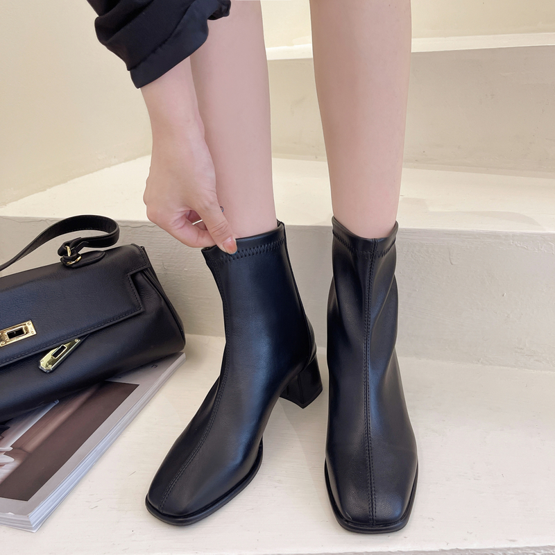 女靴子靴子韩版潮时尚保暖防滑短靴圆头粗跟
