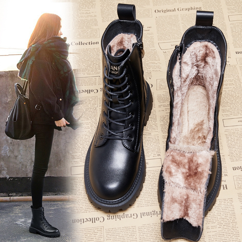 女靴子靴子韩版潮时尚保暖防滑短靴圆头粗跟