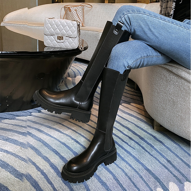 女靴子靴子韩版潮时尚保暖防滑高筒靴圆头粗跟