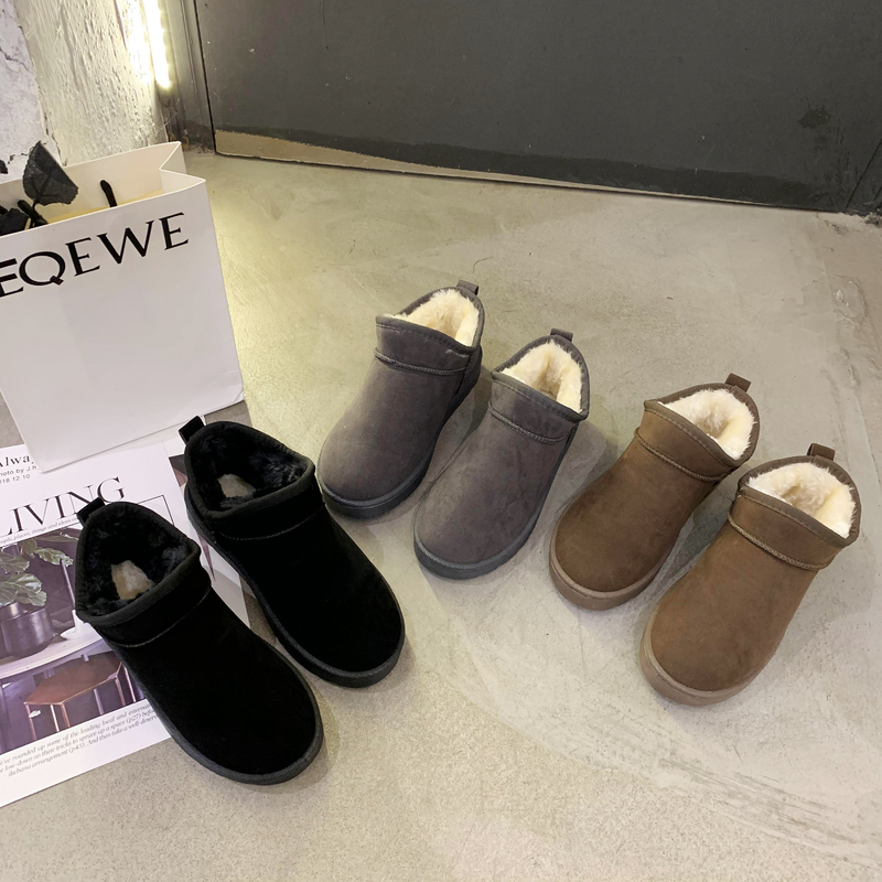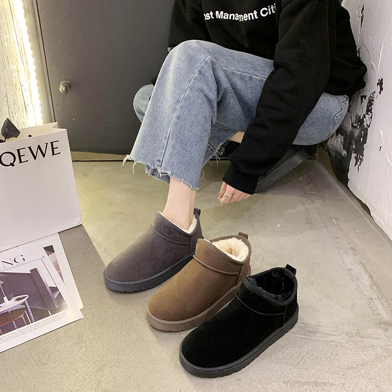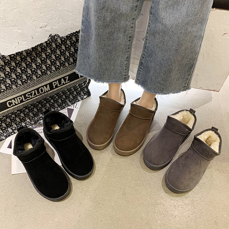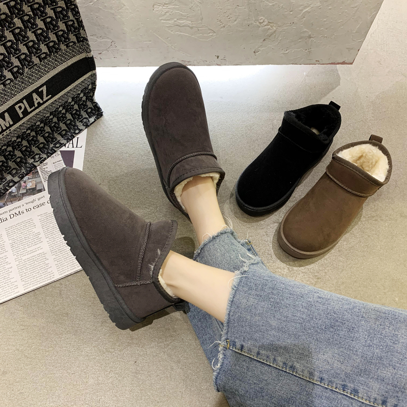 女靴子靴子韩版潮时尚保暖防滑绒面圆头平底鞋