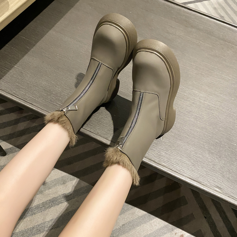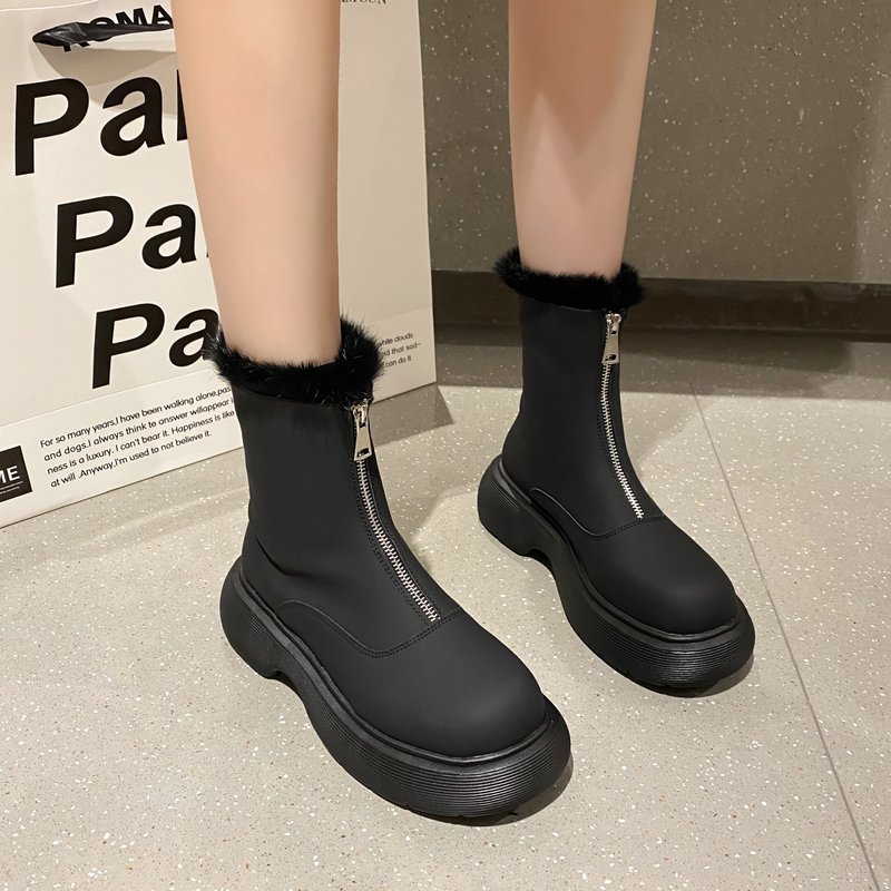 女靴子靴子韩版潮时尚保暖防滑短靴圆头粗跟