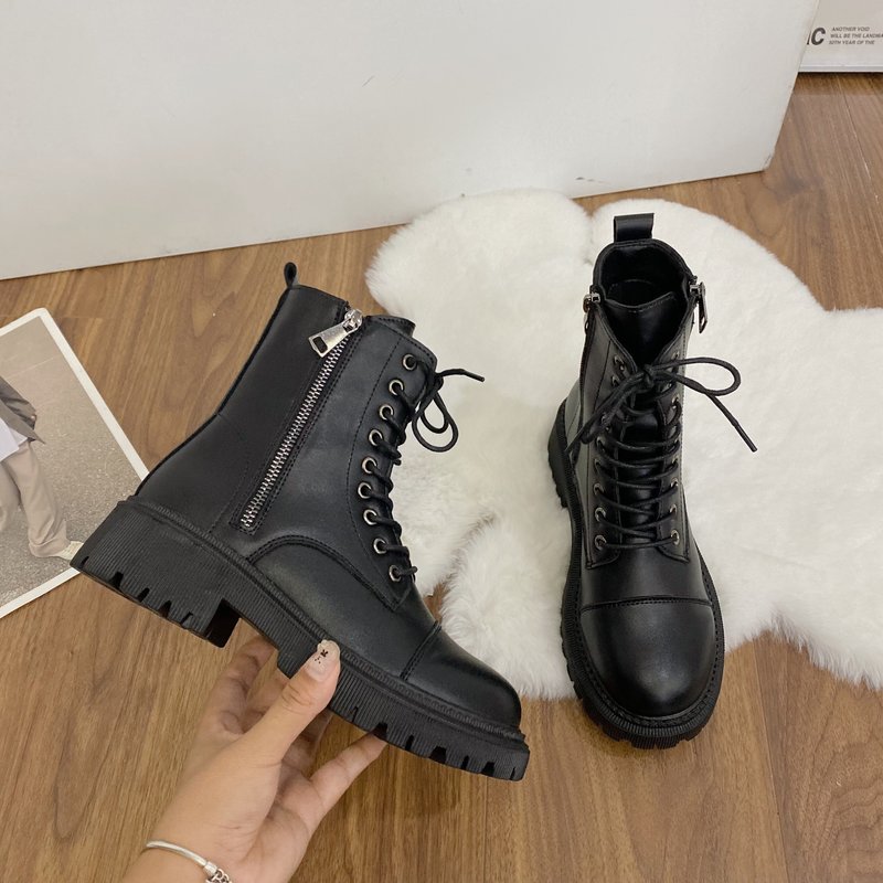 女靴子靴子韩版潮时尚保暖防滑短靴圆头粗跟