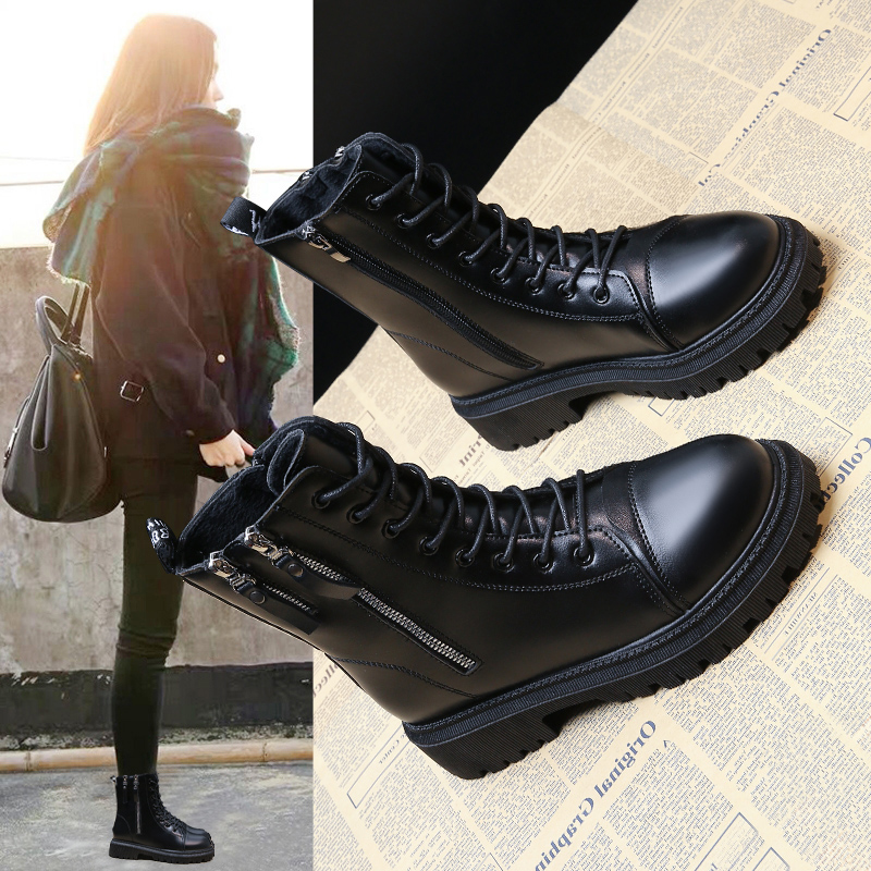 女靴子靴子韩版潮时尚保暖防滑短靴圆头粗跟