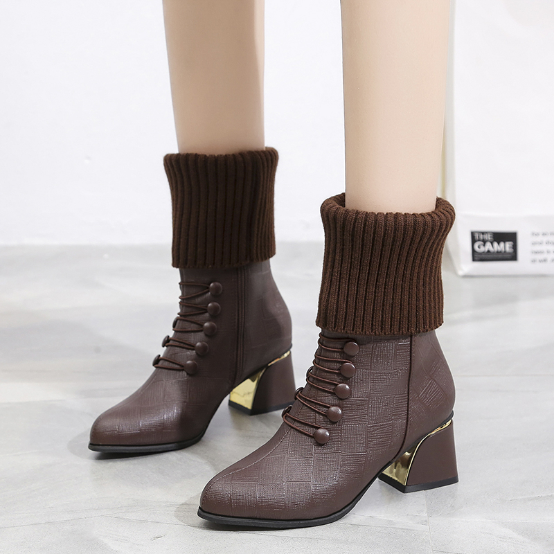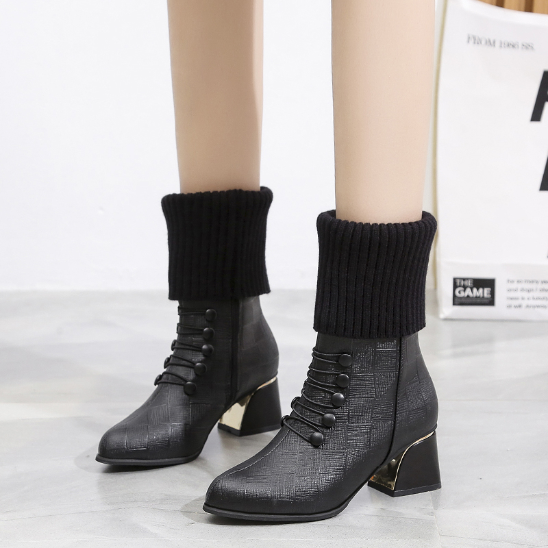女靴子靴子韩版潮时尚保暖防滑短靴圆头粗跟
