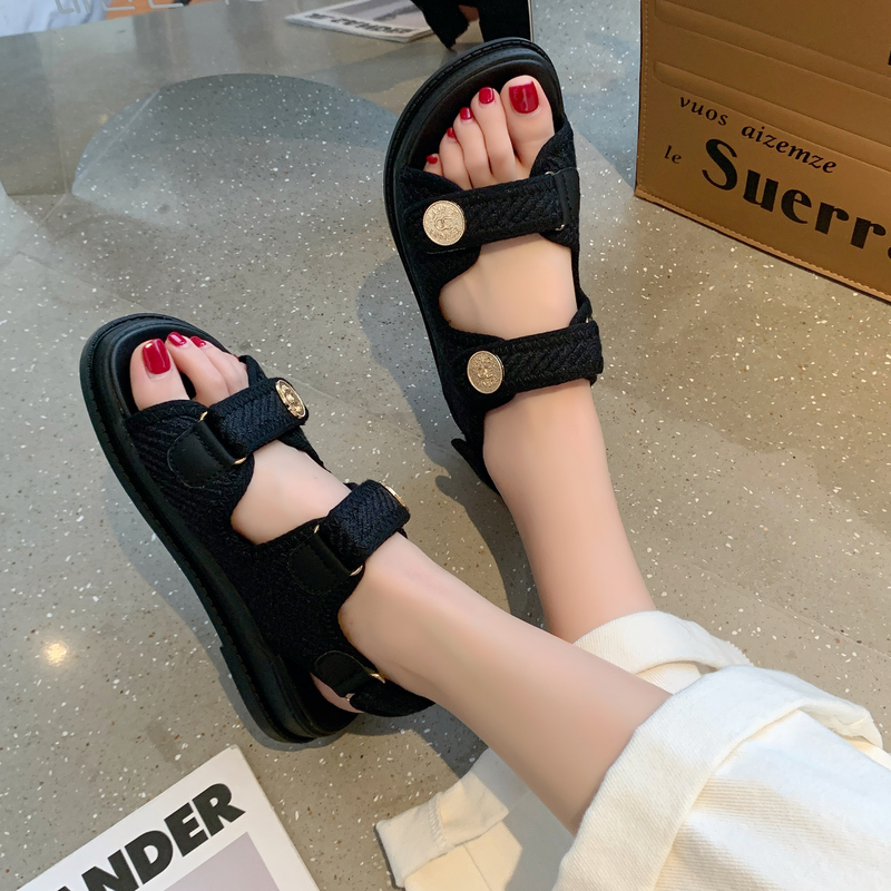 2022夏季凉鞋休闲鞋女鞋子凉鞋韩版时尚潮沙滩鞋露趾平跟