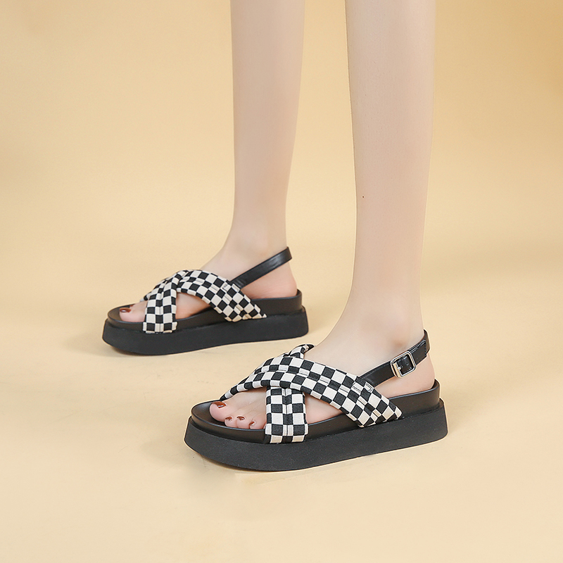 2022夏季凉鞋休闲鞋女鞋子凉鞋韩版时尚潮沙滩鞋布露趾松糕鞋