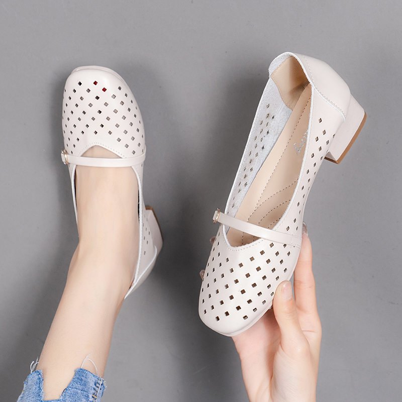 2022春夏季新款单鞋女鞋子低帮鞋韩版时尚学生网布浅口圆头粗跟