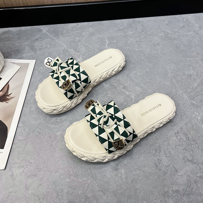 2022夏季凉拖鞋休闲鞋女鞋子拖鞋欧美英伦时尚布平底鞋