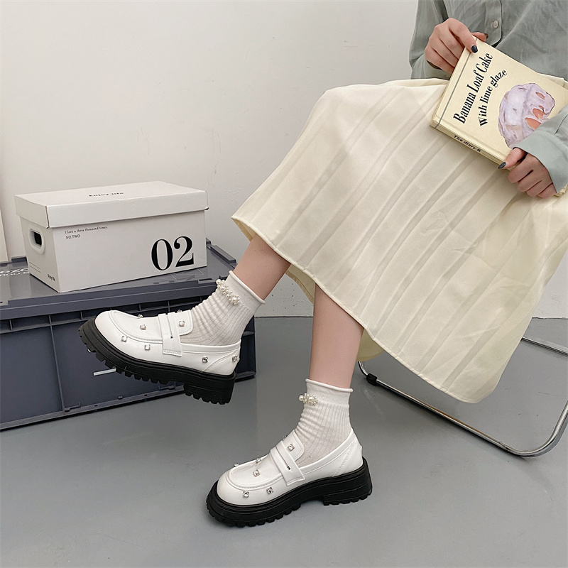 2022春夏季新款单鞋女鞋子低帮鞋韩版时尚学生圆头粗跟水钻