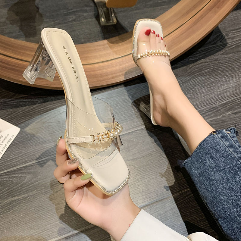 2022夏季凉拖鞋休闲鞋女鞋子拖鞋欧美英伦时尚粗跟