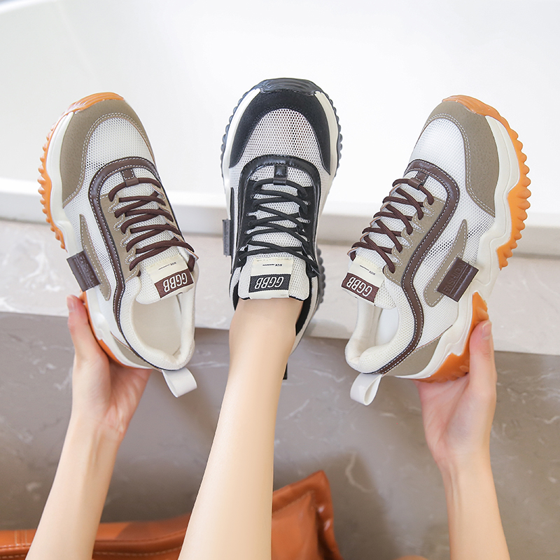 2022春夏季新款单鞋女鞋子低帮鞋韩版时尚学生网布圆头内增高