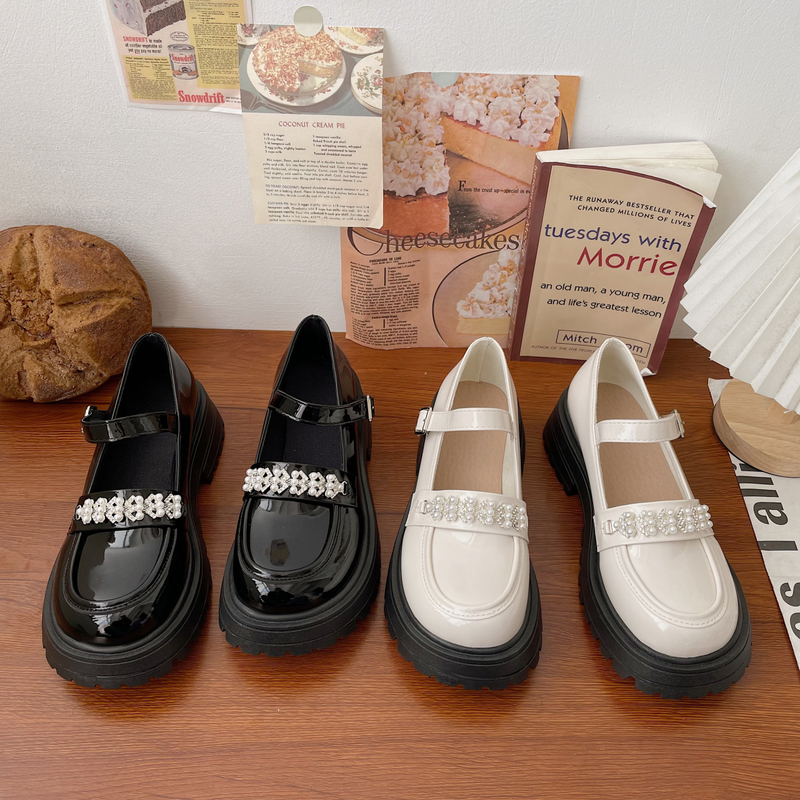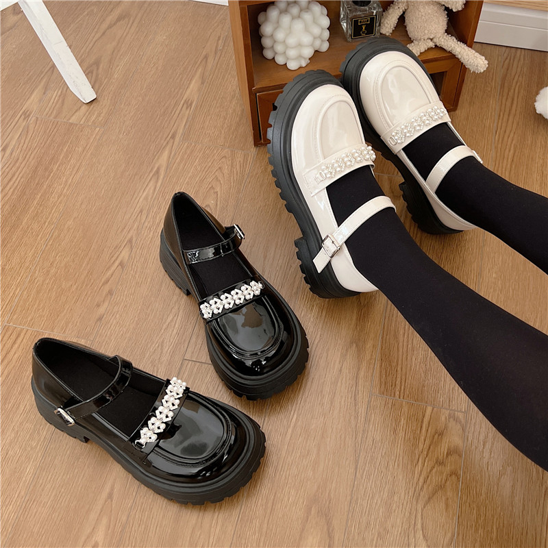 2022春夏季新款单鞋女鞋子低帮鞋韩版时尚学生圆头粗跟水钻