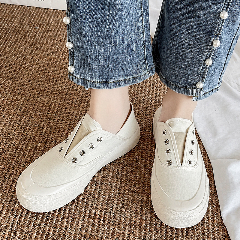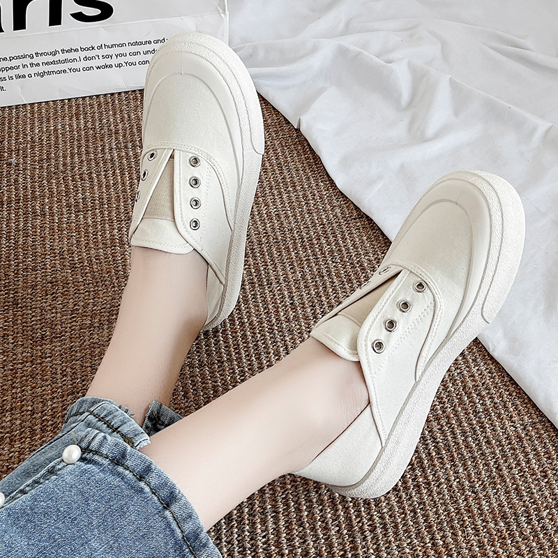 一脚蹬懒人鞋白色帆布鞋女鞋子帆布鞋欧美英伦时尚