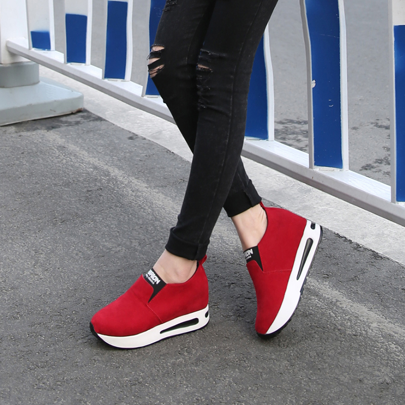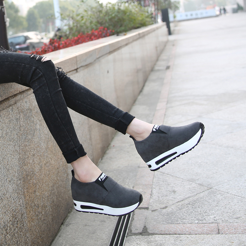 2016秋季单鞋休闲运动鞋女鞋子低帮鞋韩版时尚学生绒面圆头中跟内增高