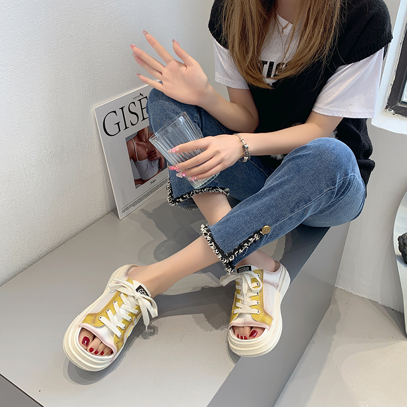 2022夏季凉拖鞋休闲鞋女鞋子拖鞋欧美英伦时尚松糕鞋
