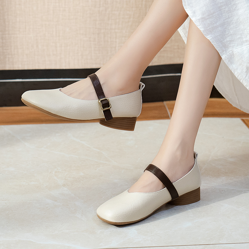 2022春夏季新款单鞋女鞋子低帮鞋韩版时尚学生浅口圆头粗跟
