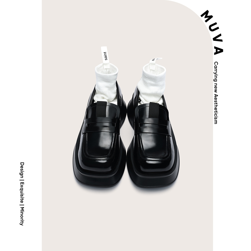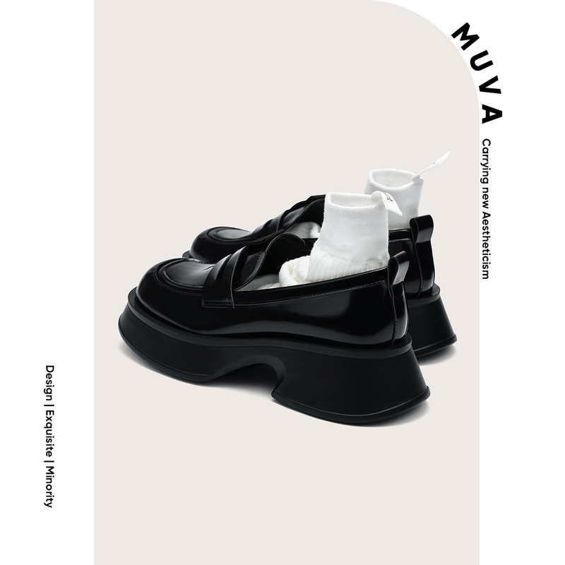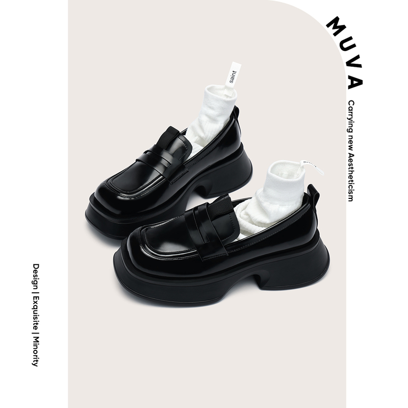 [千魅安妮鞋业-QM005] MUVA 英伦风乐福鞋 女鞋夏季厚底粗跟方头小皮鞋增高单鞋202