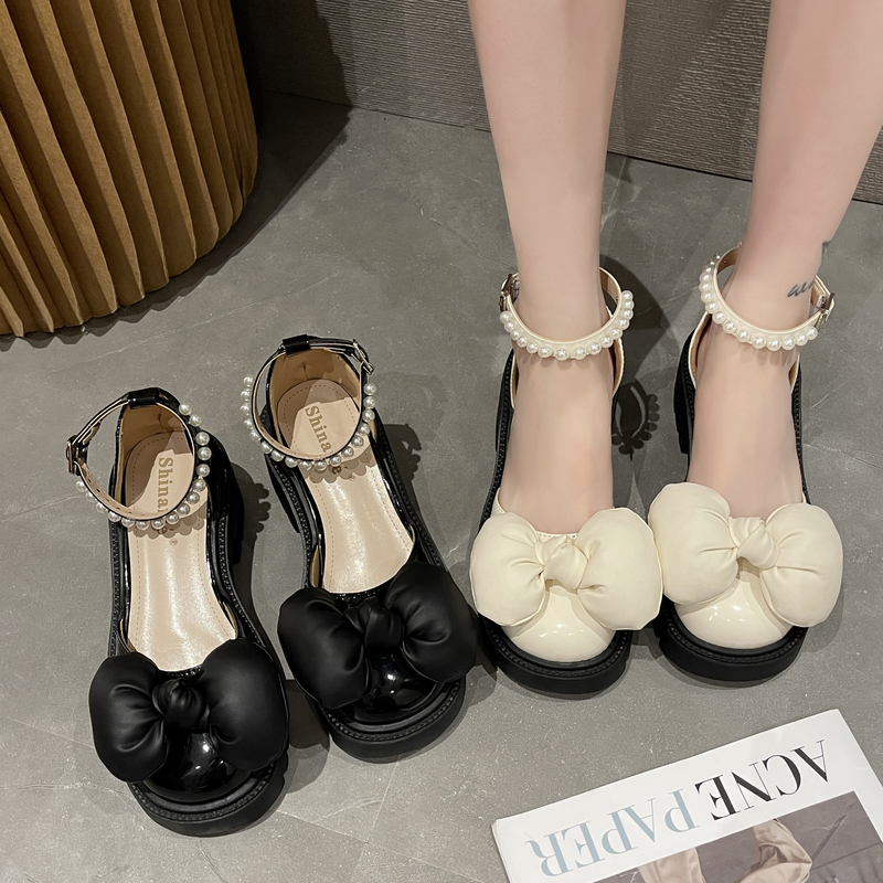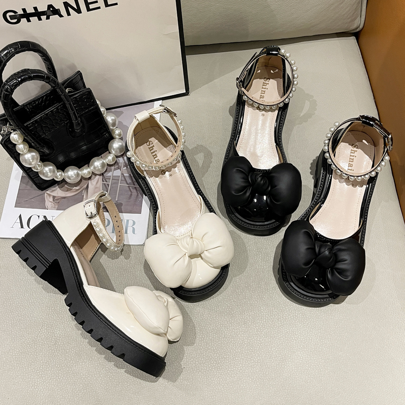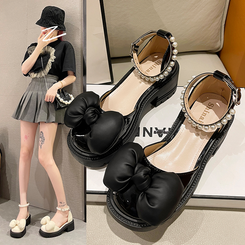 2022春夏季新款单鞋女鞋子低帮鞋韩版时尚学生圆头粗跟蝴蝶结