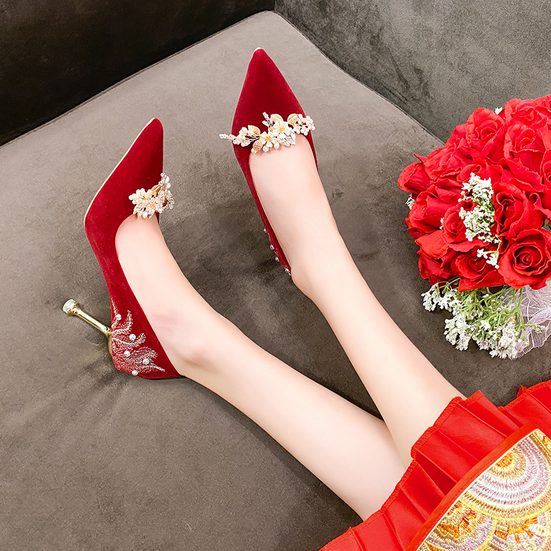 2022春夏季新款单鞋女鞋子低帮鞋韩版时尚学生绒面浅口尖头细跟