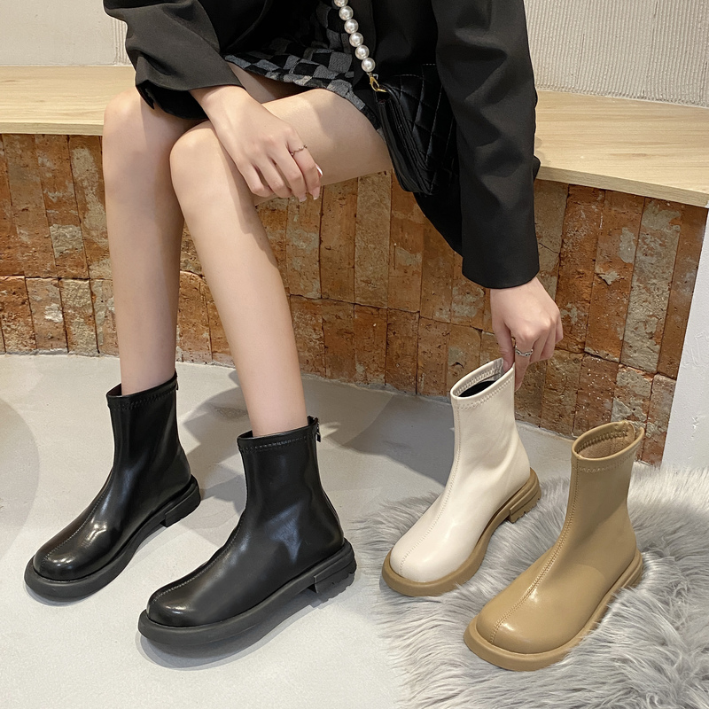 女靴子靴子韩版潮时尚保暖防滑短靴圆头粗跟