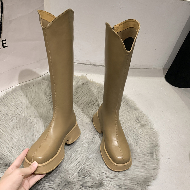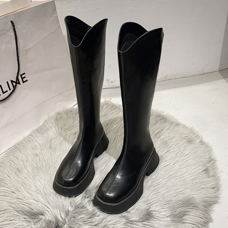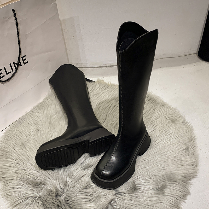 女靴子靴子韩版潮时尚保暖防滑长靴圆头粗跟