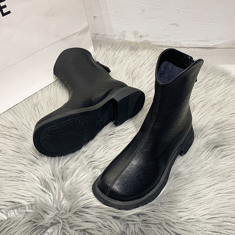 女靴子靴子韩版潮时尚保暖防滑短靴圆头粗跟