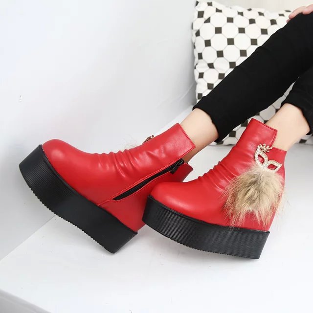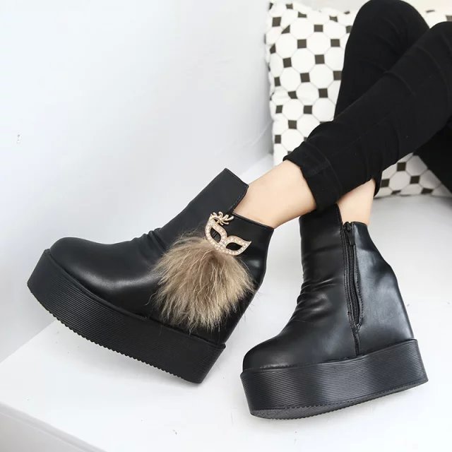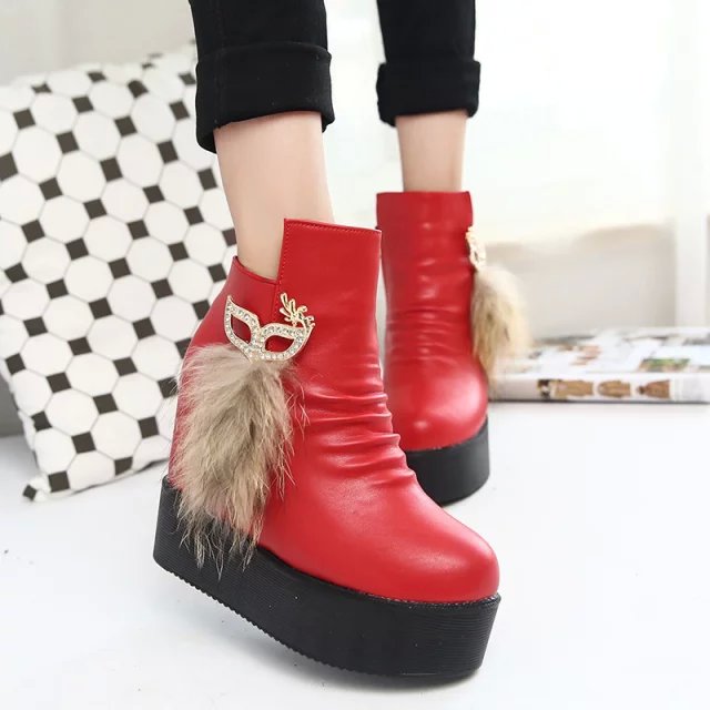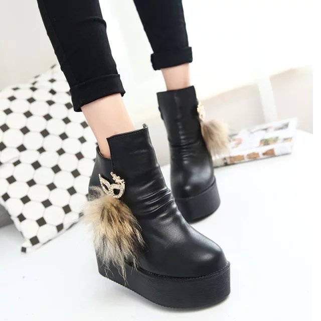 2016秋冬季女靴子靴子韩版潮时尚保暖防滑短靴中跟内增高