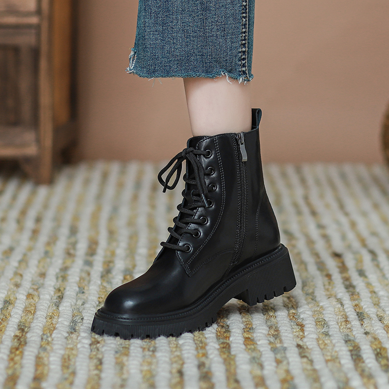 女靴子靴子韩版潮时尚保暖防滑短靴圆头粗跟