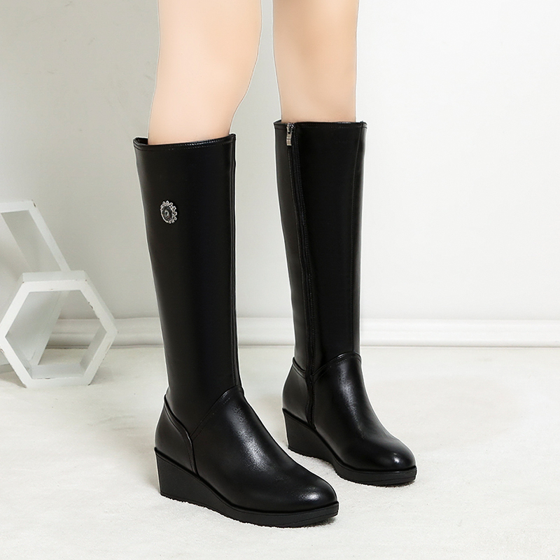 女靴子靴子韩版潮时尚保暖防滑长靴圆头粗跟