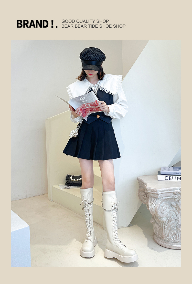 [千魅安妮鞋业-QM007] 网络图与爱私奔长靴厚底秋季瘦瘦靴子女夏黑色马丁高筒骑士小个子长筒