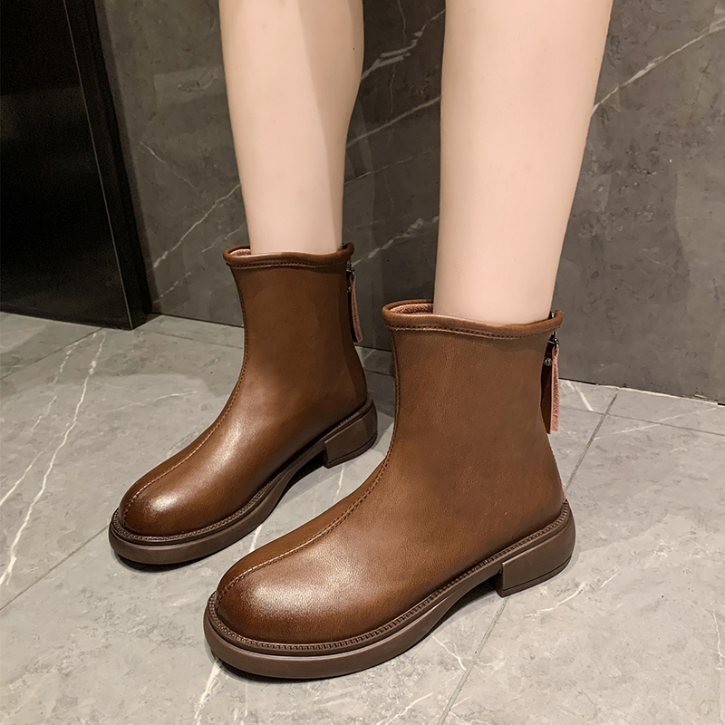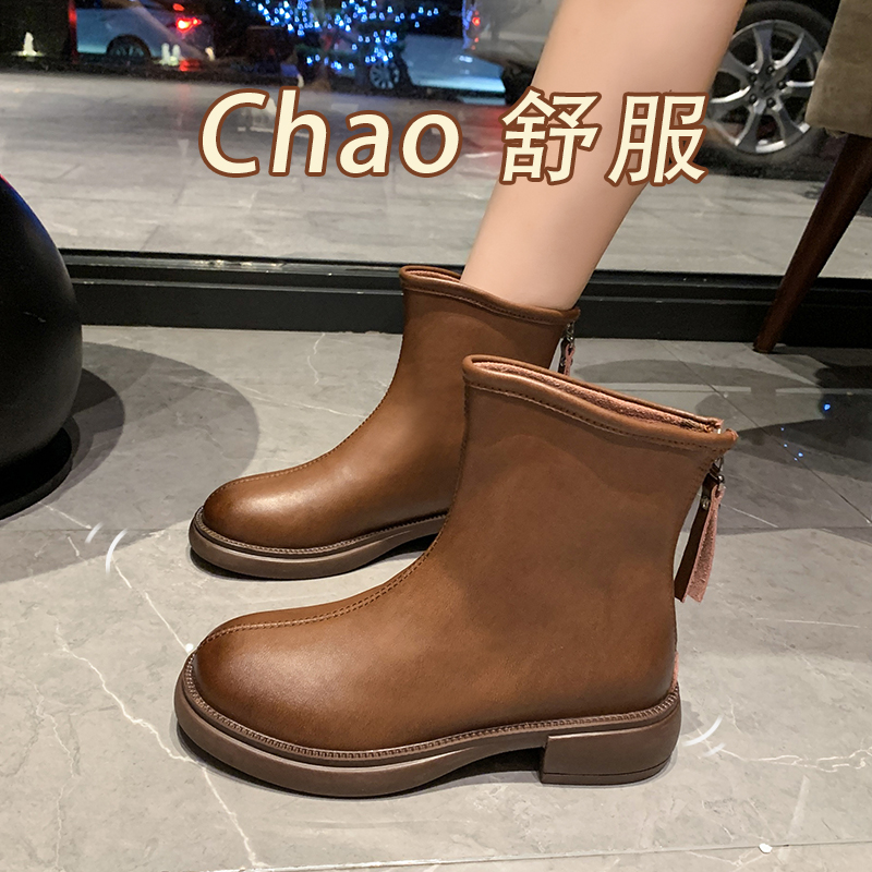 女靴子靴子韩版潮时尚保暖防滑短靴圆头粗跟