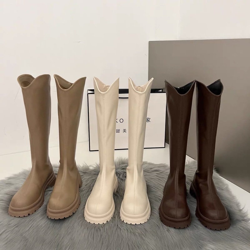 女靴子靴子韩版潮时尚保暖防滑长靴圆头粗跟