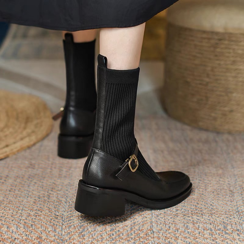 女靴子靴子韩版潮时尚保暖防滑短靴圆头粗跟