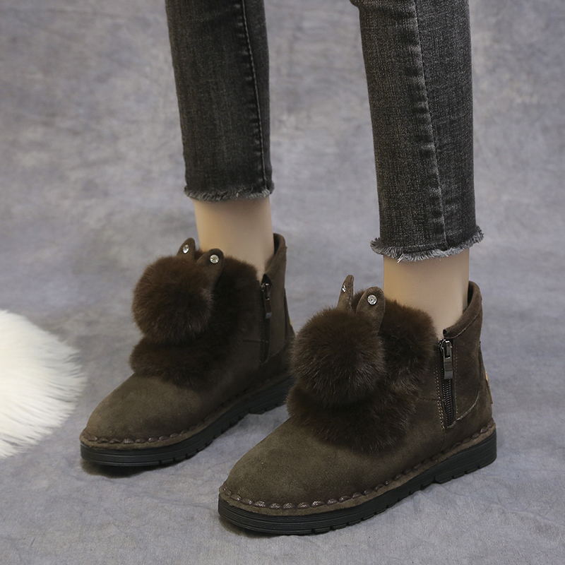 女靴子靴子韩版潮时尚保暖防滑绒面短靴圆头