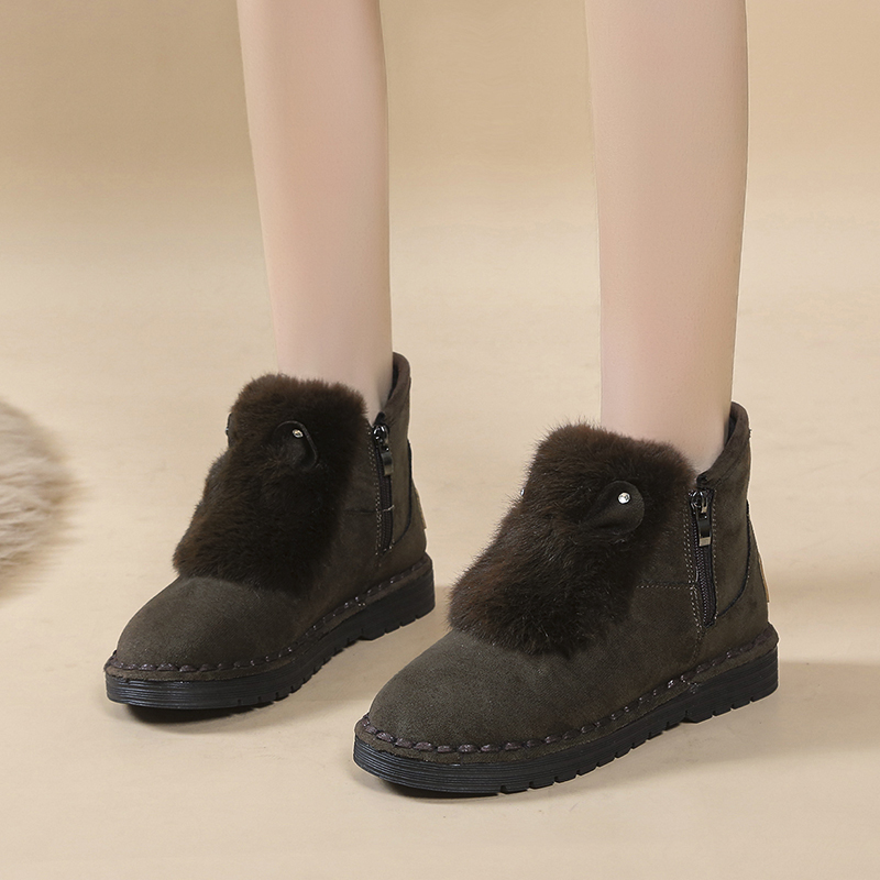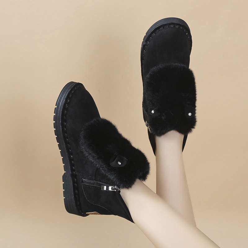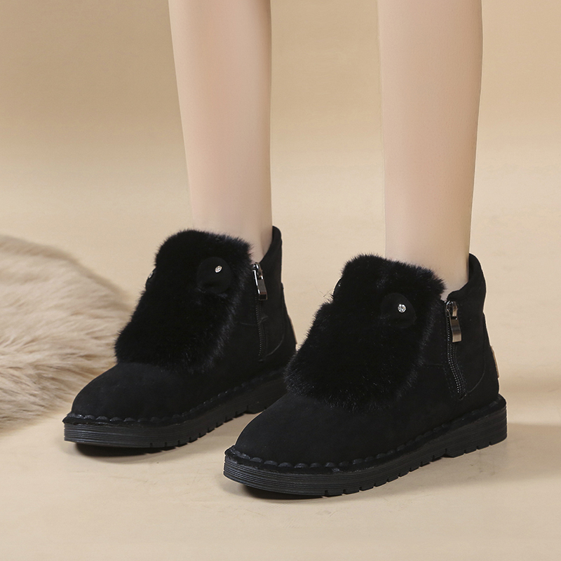 女靴子靴子韩版潮时尚保暖防滑绒面短靴圆头