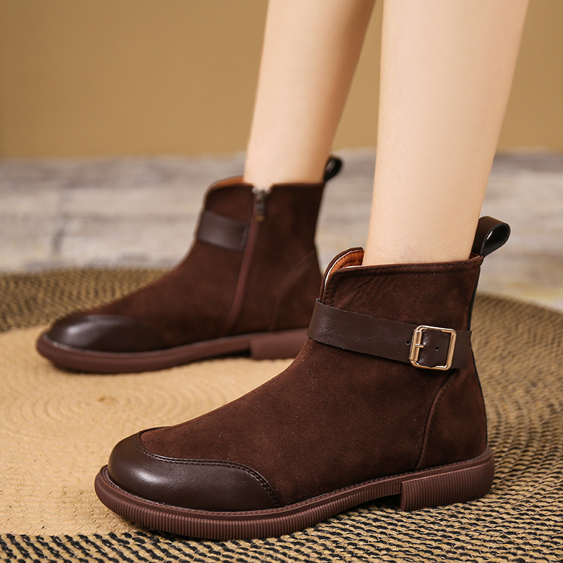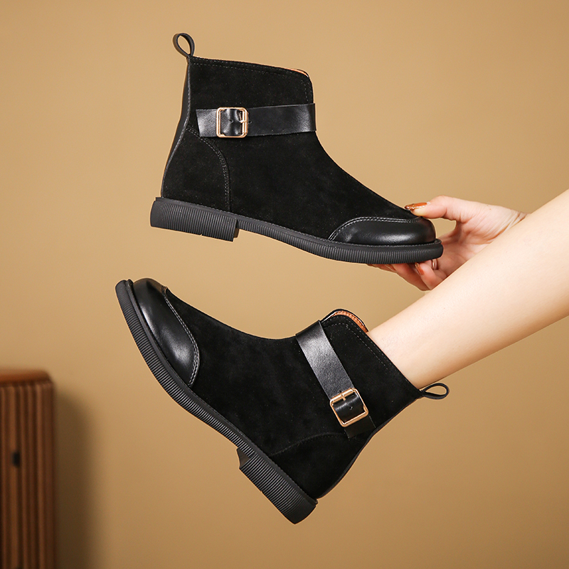 女靴子靴子韩版潮时尚保暖防滑短靴圆头粗跟
