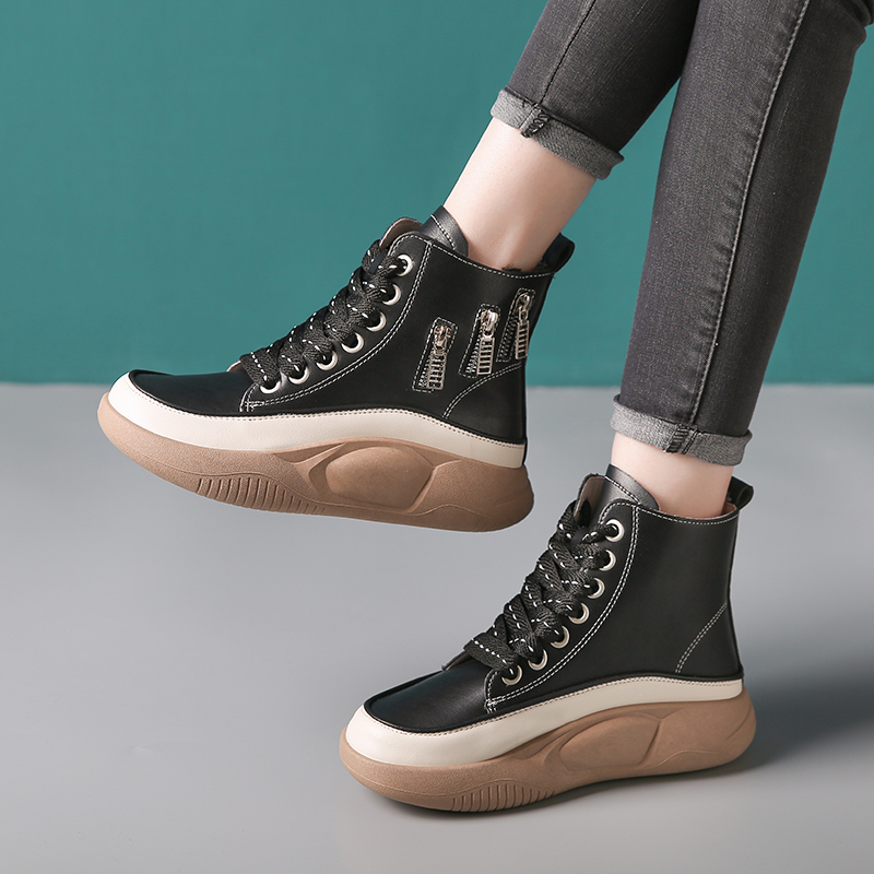 2022春季高帮鞋休闲运动鞋女鞋子单鞋高帮鞋欧美英伦时尚