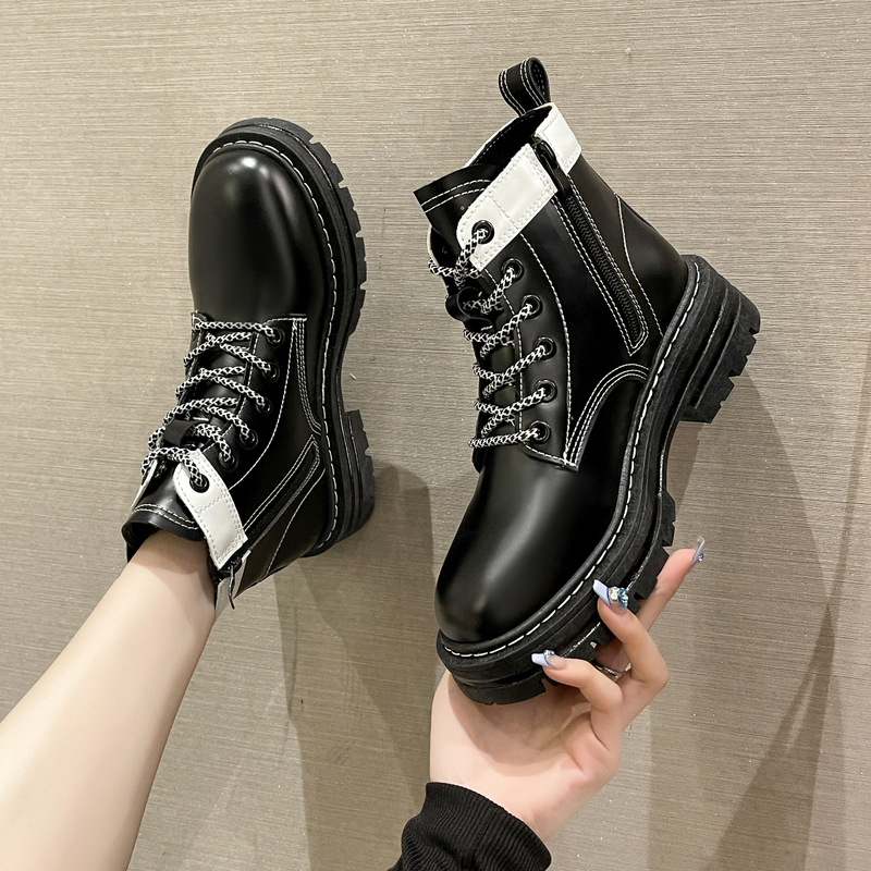 女靴子靴子韩版潮时尚保暖防滑短靴圆头粗跟