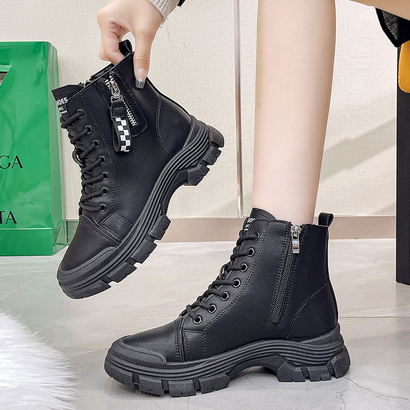 女靴子靴子韩版潮时尚保暖防滑短靴圆头粗跟