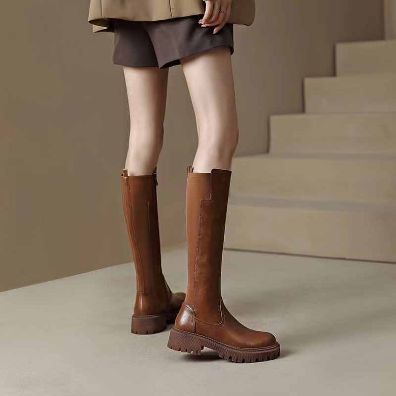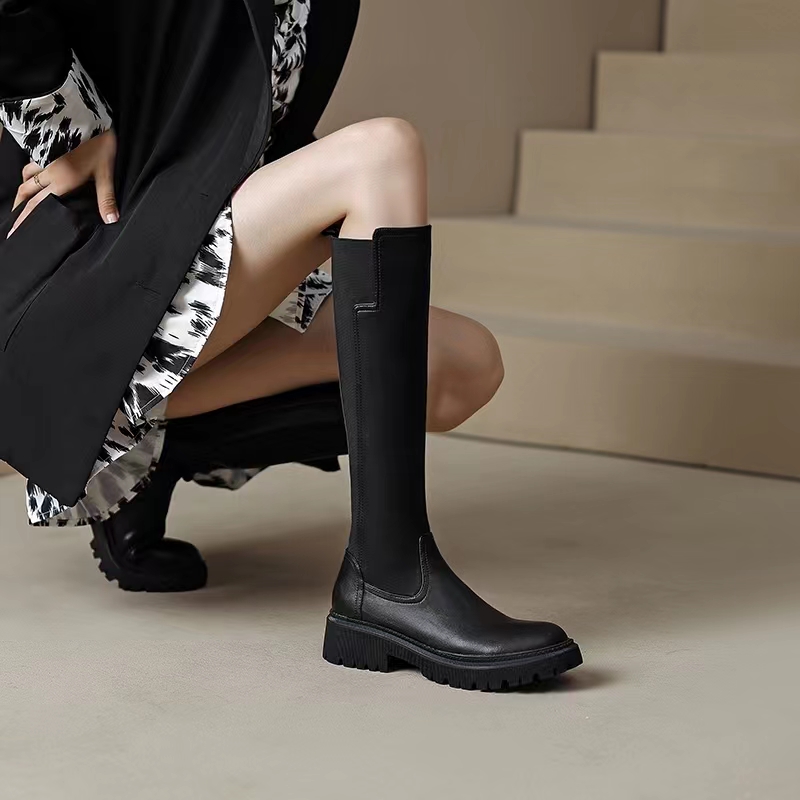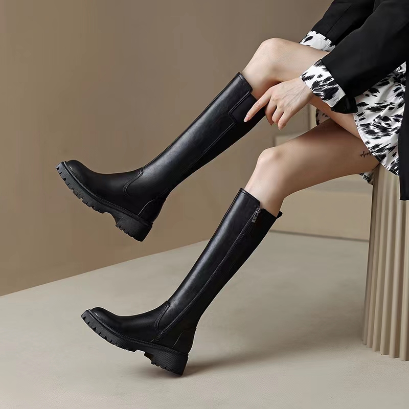 女靴子靴子韩版潮时尚保暖防滑长靴圆头粗跟