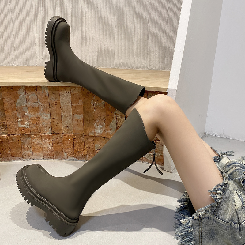女靴子靴子韩版潮时尚保暖防滑长靴圆头粗跟